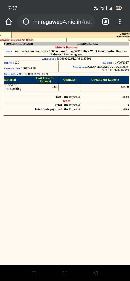सोनहत- विकासखंड सोनहत के ग्रामपंचायत रामगढ़ में सचिव कैलाश गुप्ता के द्वारा अधिकारियों से मिलीभगत करके करोड़ों रुपए हजम कर लिये इनकी रसूख का अंदाजा इसी बात से लगाया जा सकता है कि फिलहाल में ये चार पंचायतों के प्रभार में हैं और लगभग इनके हर पंचायत में एनीकट निर्माण का कार्य चल रहा है और जिसमें धड़ंल्ले से जंगल की गिट्टी का प्रयोग किया जा रहा है लेकिन तमाम शिकायतों के बावजूद इनपर कोई कार्यवाही नहीं होती ताजा मामला रामगढ़ पंचायत का है जहाँ सचिव महोदय के द्वारा पूरी की पूरी सड़क ही कागजों में बना दी जानकारी के मुताबिक वित्तीय वर्ष 2017-18 में गोंड़ पसरी से बबुआ घर तक एक किलोमीटर मिट्टी सड़क एवं एक नग आरसीसी पुलिया का है ग्रामीणों के मुताबिक सिर्फ एक दिन उक्त कार्य में मजदूर लगे थे और ग्रामीणों तथा वनविभाग के विरोध के बाद काम बंद कर दिया गया था लेकिन सचिव महोदय द्वारा मौके का फायदा उठाते हुए उक्त कार्य में पुलिया निर्माण हेतु सामग्री प्रदाय के नाम पर अपने रिश्तेदार घनश्याम गुप्ता का बिल लगा कर 376000 रुपये निकाल लिए अब बिना तकनीकी सहायक,कार्यक्रम अधिकारी की मिलीभगत से सिर्फ सचिव ये काम नहीं कर सकता, जाहिर है सचिव महोदय ने मोटा कमीशन दिया होगा तभी कागजों में काम पूरा हो गया और राशि हजम हो गई