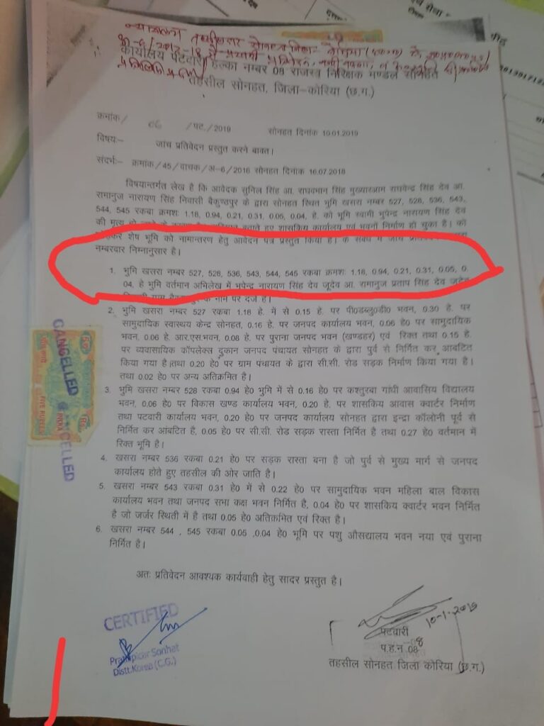 सोनहत- सोनहत मुख्यालय में मेन सड़क के किनारे संचालित दवा दुकान गुरु कृपा मेडिकल स्टोर खसरा क्रमांक में लगभग चार पाँच वर्षों से संचालित है जो की स्वर्गीय भूपेंद्र नारायण सिंह के नाम पर शासकीय रिकार्ड में दर्ज है जिस पर दुकान संचालक ने तत्कालीन सरपंच उदयराज सिंह से सांठगांठ कर लंबी चौड़ी दुकान का निर्माण रातों रात करवा लिया ताज्जुब की बात तो यह है कि उक्त निर्माण के सम्बंध में भूमि मालिक के ओर से नियुक्त वकील राजेंद्र प्रसाद साहू ने तहसीलदार महोदय को ज्ञापन देकर निर्माण में रोक लगवाई गई थी लेकिन न्यायालय के आदेश की अवहेलना कर सरपंच ने निर्माण कार्य पूरा कर दुकान संचालक को सौंप दिया और भ्रष्टाचार की पराकाष्ठा यह है कि उक्त स्थान पर दुकान आज भी धड़ल्ले से संचालित है जबकि नियमानुसार अतिक्रमण की भूमि में दवा दुकान चल ही नहीं सकती