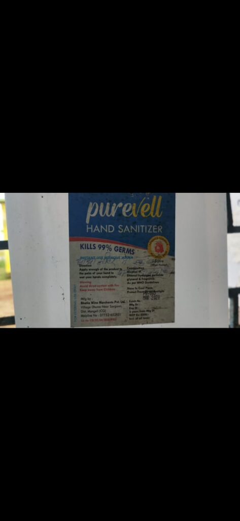 सचिव महोदय पांच डिब्बा कुल 25 लीटर हैंड सेनेटाइजर लाये थे जिसका हमारे द्वारा ₹30000 भुगतान किया गया