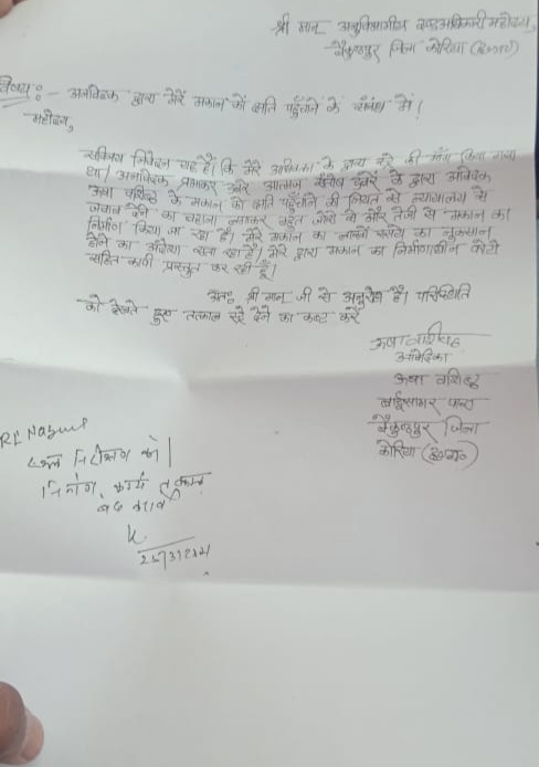 ✍ जिला कोरिया बैकुन्ठपुर एस डी एम द्वारा नवनिर्माण मकान को रोकने का आर आई को दिया गया तत्काल आदेश।