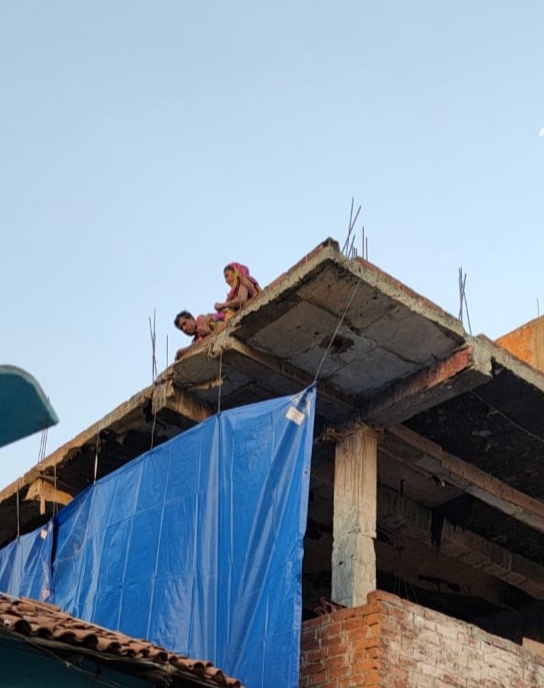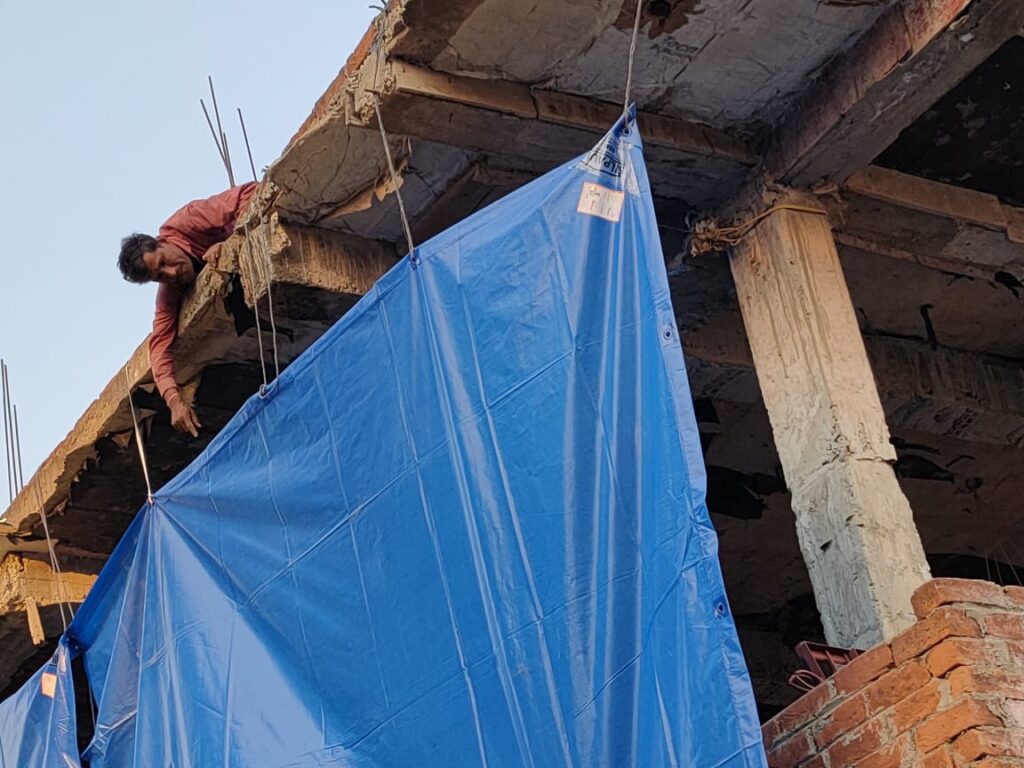 जब आवेदक ने सी सी टीवी कैमरा लगाया तो निर्माण कार्य न दिखाई दे एवं कार्य चलता रहे त्रिपाल डाला गया।
