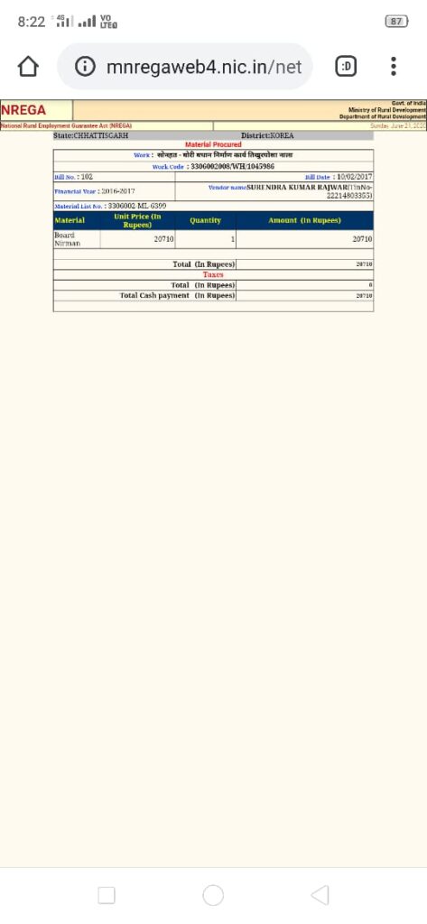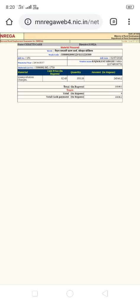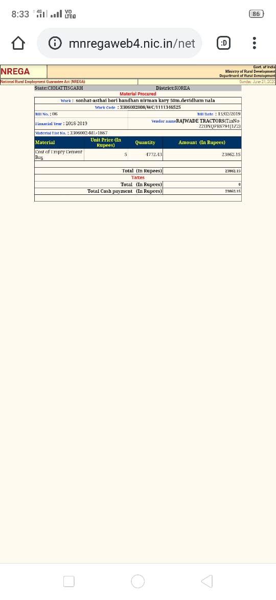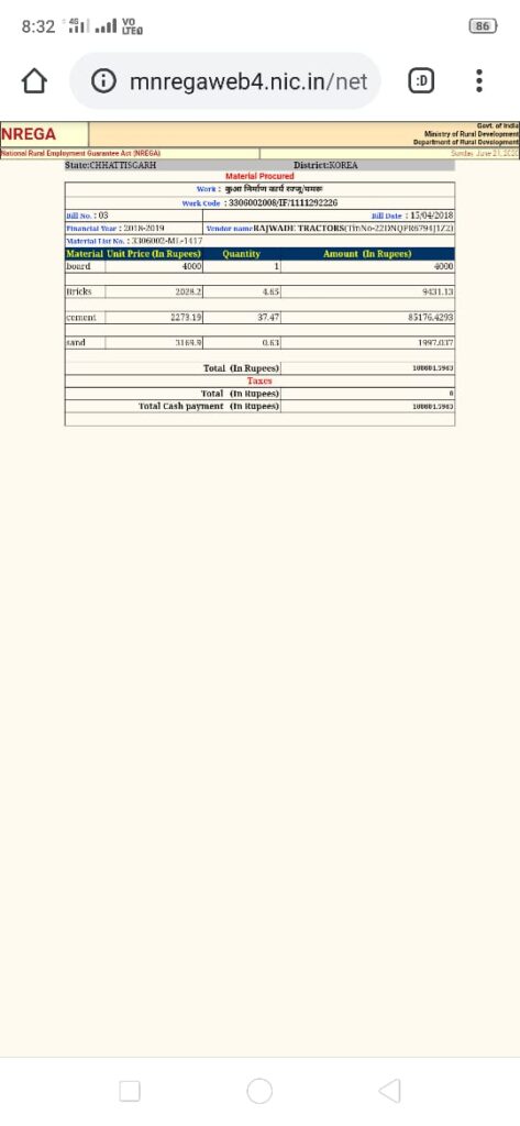 मजदूर पिता को भी बनाया मटेरियल सप्लायर- साहब ने कामयाबी के झंडे गाड़ते हुए दो कदम और बढ़ कर जून 2018 में अपने मनरेगा मजदूर पिता के नाम से मनरेगा के तमाम कार्यों में लाखों रुपए के बिल लगा कर बड़ा फर्जीवाड़ा किया जो कि स्वयं गरीबी रेखा कार्डधारी हैं और रेगुलर जीएसटी टैक्स पेयर भी,मजे की बात तो यह है कि इसी दौरान पिताजी मनरेगा में बकायदा मजदूरी भी कर रहे हैं और तमाम शिकायतों के बाद भी रोजगार सहायक महोदय धड़ल्ले से नौकरी कर रहे हैं।