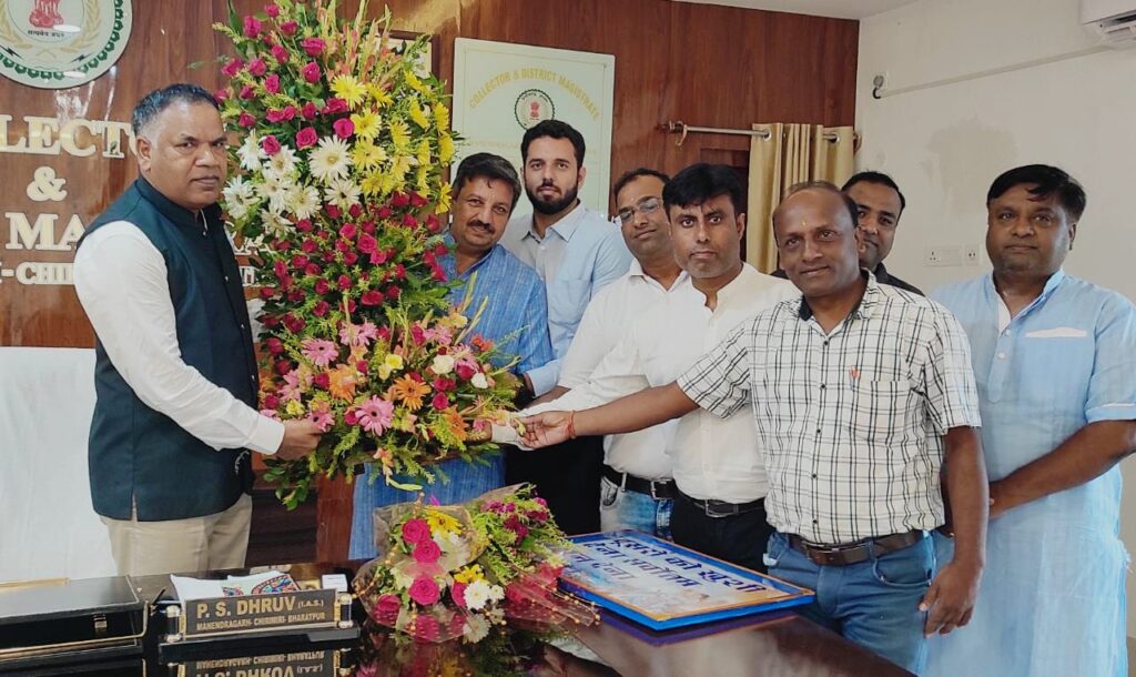 मनेन्द्रगढ़- नवीन जिले मनेन्द्रगढ़-चिरमिरी-भरतपुर में आज से प्रशासनिक कार्यों की शुरुआत हुई। पहले दिन ही कलेक्टर श्री पीएस ध्रुव ने जिला कलेक्ट्रेट के सभाकक्ष में कलेक्टर कार्यालय के अधिकारियों-कर्मचारियों की बैठक ली। उन्होंने बैठक में कलेक्टर कार्यालय के कर्मचारियों से उनके कार्यों की जानकारी ली और उन्हें बेहतर काम करने प्रोत्साहित किया। उन्होंने कहा कि लोकहित में बेहतर समन्वय एवं सहयोग के साथ काम करें। उन्होंने कलेक्टर कार्यालय के विभिन्न शाखाओं में संपादित कार्यों की जानकारी लेते हुए समीक्षा की। बैठक में मनेन्द्रगढ़ एसडीएम श्रीमती नयनतारा सिंह तोमर एवं राजस्व अधिकारी तथा लिपकीय स्टाफ उपस्थित रहे।