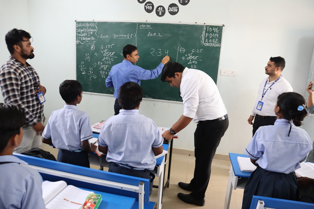 इसी बीच कलेक्टर ने कक्षा 7वीं में भी बच्चों से मुलाकात की। अपने बीच एक बार फिर कलेक्टर को देख बच्चे बेहद खुश हुए। इस दौरान गणित की क्लास चल रही थी जिसमें दशमलव के सवाल हल किये जा रहे थे। कलेक्टर ने शिक्षक की बेहतर तरीके से बच्चों को गणित समझाने पर शिक्षक की सराहना की। कलेक्टर श्री शर्मा फिर टीचर बन और बच्चों से सवाल हल करने कहा। जिसपर छात्रा श्वेता ने सबसे पहले सवाल को सही हल कर दिखाया। कलेक्टर ने छात्रा की सराहना की और बेहतर पढ़ाई करने सभी बच्चों को प्रोत्साहित किया।
