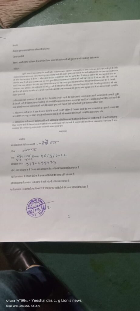 हम आपको बता दें कि एमसीबी जिला के भाजपा मंडल मीडिया प्रभारी मनेंद्रगढ़ श्री यीशै दास के द्वारा एक प्रेस विज्ञप्ति जारी करते हुए जानकारी दे बताया कि आज दिनांक 26/9/2022 को 4 सूत्रीय मांगों को लेकर मुख्य नगरपालिका अधिकारी के नाम ज्ञापन सौंपा गया है। उक्त ज्ञापन में उल्लेखित किया गया है कि आपको ज्ञात होगा कि आपके क्षेत्र मनेंद्रगढ़ नगर पालिका अंतर्गत निम्न प्रकार की जन समस्याएं बनी हुई है जिसे संज्ञान में ले उक्त व्यवस्था को दुरुस्त कराए जाने कृपा करें । जिससे कि वार्ड वासियों को उक्त समस्या का निदान हो सके जो इस प्रकार से हैं 1-मौहारपारा वार्ड क्रमांक 5 में स्थित आर ओ वाटर सेंटर है जो छत्तीसगढ़ शासन की महत्वपूर्ण योजना के अंतर्गत आता है जो आज दिनांक तक बंद पड़ा हुआ जिसका लाभ वार्ड वासियों को नहीं मिल पा रहा है जो अब धीरे-धीरे जर्जर भी हो रहा है । तथा आर ओ वाटर सेंटर के अंदर लगा टाईल्स पत्थर भी उखड़ चुका है तथा वहीं पर स्थित विशालकाय पेड़ है जिससे टकराकर आरओ वाटर सेंटर में लगी छत भी टूट गई है शीशम पेड़ की काट छांट कटिंग कराया जाए जिससे नुकसान हो रहे वाटर सेंटर को बचाया जा सके अतः आपसे नम्र निवेदन है कि उक्त व्यवस्था को दुरुस्त करा सुचारु रुप से संचालित कराए जाने की महान कृपा करें ।