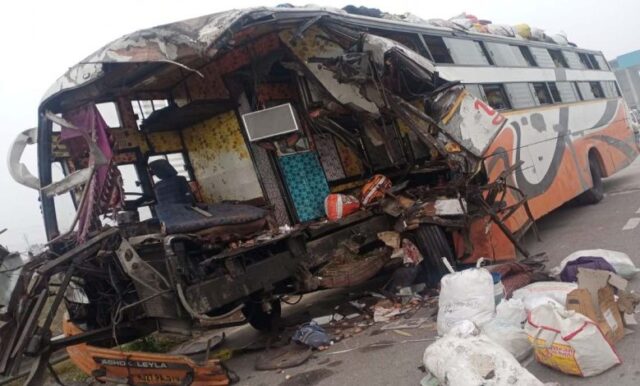 घना कोहरा और ड्राइवर की चूक लगातार आफत बनकर लोगों की जान ले रहा है. उन्नाव में आगरा-लखनऊ एक्सप्रेसवे पर बस चालक ने DCM वाहन में पीछे से जोरदार टक्कर मार दी. इस हादसे में बस में सवार 4 लोगों की मौत हो गई, जबकि 10 अन्य घायल हो गए. दुर्घटनाग्रस्त स्लीपर बस गुजरात के राजकोट से लखीमपुर खीरी जा रही थी. आशंका जताई जा रही है कि बस ड्राइवर को झपकी आ गई थी और वह आगे वाहन को नहीं देख पाए. इस वजह से बस ने सीधे डीसीएम में टक्कर मार दी. सड़क हादसे की सूचना मिलते ही पुलिस की टीम मौके पर पहुंची और शव को कब्जे में लेकर उसे पोस्टमॉर्टम के लिए भेज दिया.