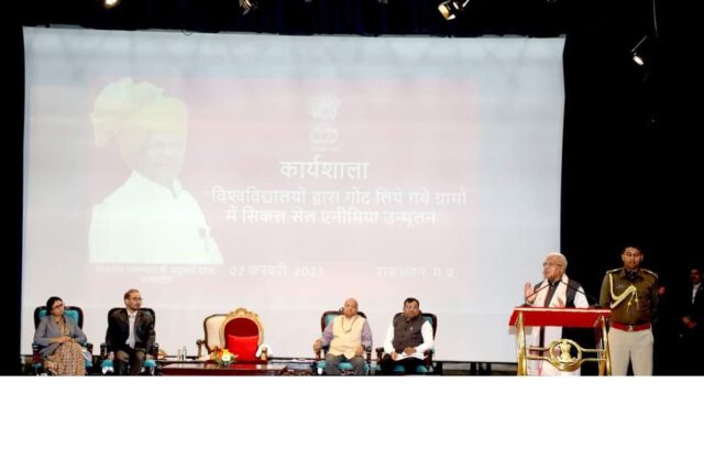 राज्यपाल श्री पटेल ने कहा कि प्रदेश के शासकीय विश्व विद्यालयों द्वारा सिकल सेल एनीमिया उन्मूलन के पहले चरण में 5-5 गाँव गोद लिये गये हैं। आगे और गाँव भी गोद लिये जाये। उन्होंने निजी विश्वविद्यालयों द्वारा भी 5-5 गाँव गोद लिये जाने की कार्यवाही करने के लिए कहा। राजभवन में जनजातीय प्रकोष्ठ के अध्यक्ष श्री दीपक खाण्डेकर ने सिकल सेल एनीमिया उन्मूलन में विश्वविद्यालयों के योगदान की सराहना की। उन्होंने कहा कि कार्यशाला में छात्र-छत्राओं द्वारा सिकल सेल एनमिया उन्मूलन में गाँव भ्रमण के साझा किये गये अनुभव स्पष्ट करते हैं कि छात्र-छात्राओं का सिकल सेल एनीमिया उन्मूलन में महत्वपूर्ण योगदान है।