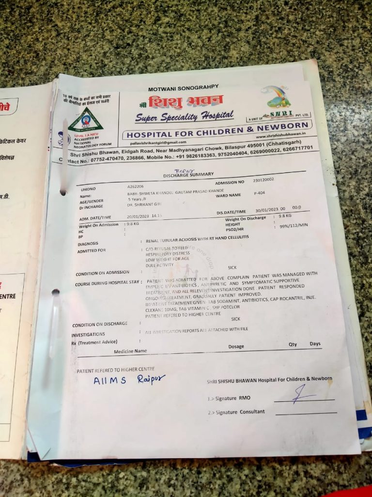 मध्य नगरी चौक स्थित शिशु भवन हॉस्पिटल में पैर के इलाज के लिए एक मासूम को भर्ती कराया गया था. लेकिन डॉक्टरों की लापरवाही मासूम पर भारी पड़ गई. डॉक्टरों के गलत इलाज करने की वजह से बच्ची के हाथ में इंफेक्शन फैलने की वजह से हाथ तक कटाने की नौबत आ गई है.