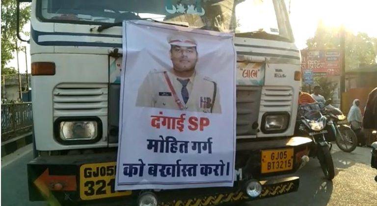 सरगुजा संभाग के बलरामपुर जिला मुख्यालय में स्थित कोतवाली थाने में भी पोस्टर लगाया गया है, जिसमें लिखा है कि दबंगाई एसपी को बर्खास्त करो. ये पोस्टर केवल थाना ही नहीं बल्कि शहर के कई हिस्सों में लगा हुआ है. यहां तक की ट्रकों और बसों में भी पोस्टर लगाया गया है. ये पूरा मामला बुधवार देर रात हुई मारपीट से जुड़ा हुआ है. जिसे लेकर खुद विधायक गुरुवार दोपहर से आरोपियों का जुलूस निकालने की मांग को लेकर एनएच 343 पर धरने पर बैठे हैं. वहीं एसएसपी के मनाने पर उन्हें चमका दिया और कहा कि वे एसपी से नीचे किसी से बात नहीं करेंगे.