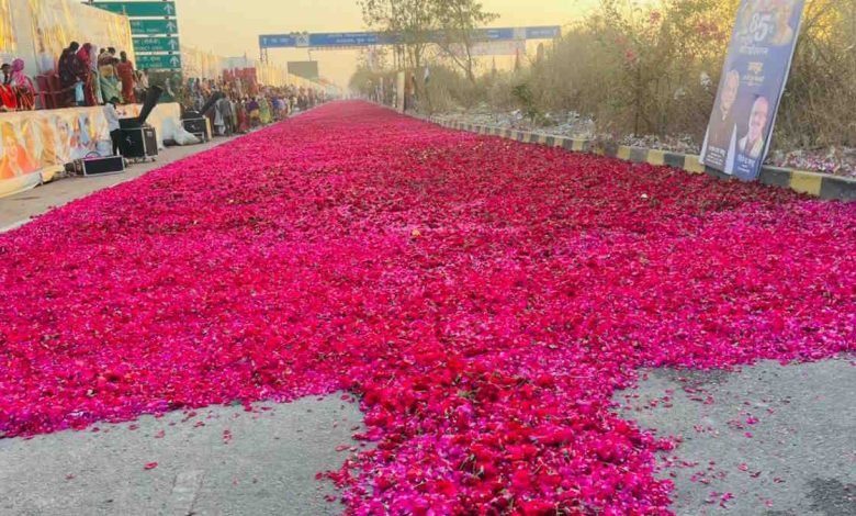 रायपुर। कांग्रेस के महाधिवेशन में शामिल होने के लिए शनिवार को रायपुर पहुंची प्रियंका गांधी का ऐतिहासिक स्वागत किया गया. उनके स्वागत के लिए एयरपोर्ट वाली सड़क को कांग्रेसियों ने गुलाब की पंखुड़ियों से सजा दिया था. कांग्रेसियों के उत्साह का आलम यह था कि उनके एयरपोर्ट से निकलते ही शुरू हुई फूलों की बरसात पूरे रास्ते तक होती रही.