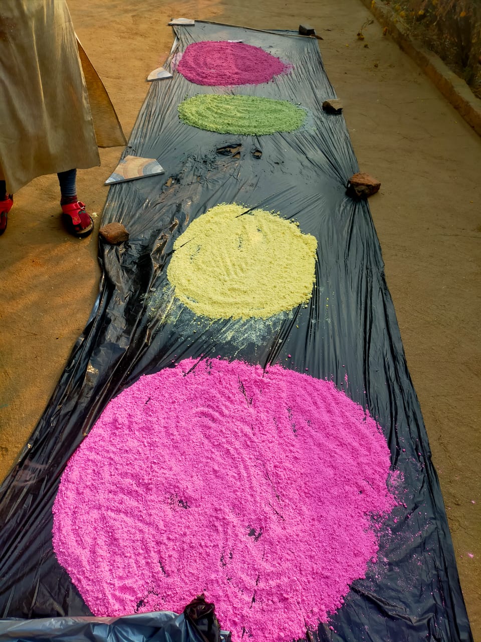 जिसमें विकासखण्ड मनेन्द्रगढ़ की जय अम्बे महिला स्व सहायता समूह की 02 महिलाओं ने 50 किलोग्राम, विकासखण्ड खड़गवां की दुर्गा स्व सहायता समूह की 05 महिलाओं ने 50 किलोग्राम तथा विकासखण्ड भरतपुर की प्रगति स्व सहायता समूह की 04 महिलाओं ने 60 किलोग्राम गुलाल निर्मित किए हैं और अब तक 160 किलोग्राम गुलाल निर्माण किया। समूह की महिलाओं ने बताया कि गुलाल निर्माण हेतु उन्हें आवश्यक सामग्रियां स्थानीय बाज़ारों से आसानी से प्राप्त हो जाती हैं। अरारोट पाउडर में पालक, चुकंदर, हल्दी, गेंदे तथा पलाश के फूलों को उबालकर उन्हें छानकर मिलाया जाता है। प्राप्त मिश्रण को अच्छी तरह सुखाकर छानने के बाद उसमें रोज वॉटर, केवड़ा वॉटर जैसे प्राकृतिक सुगन्धक मिलाने के बाद हर्बल गुलाल तैयार होता है। उन्होंने बताया की गुलाल अलग-अलग मात्रा में पैकिंग कर लिया गया है और अब इन्हें स्टॉल लगाकर बेचा जाएगा।