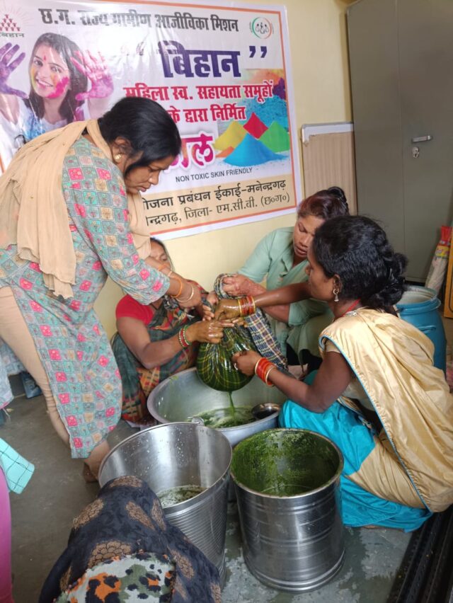 मनेन्द्रगढ़-चिरमिरी-भरतपुर / रंगो के त्योहार होली पर एमसीबी जिले में स्व सहायता समूह की महिलाएं हर्बल गुलाल बनाने में जुटीं हैं। फूल-सब्जियों के प्राकृतिक रंगों से बनाए जा रहे हर्बल गुलाल होली की खुशियों को दोगुना करने अब पूरी तरह तैयार है। होली में सबसे ज्यादा भय केमिकल युक्त रंगों का होता है। समूह द्वारा बनाए जा रहे हर्बल गुलाल पूरी तरह सुरक्षित है।