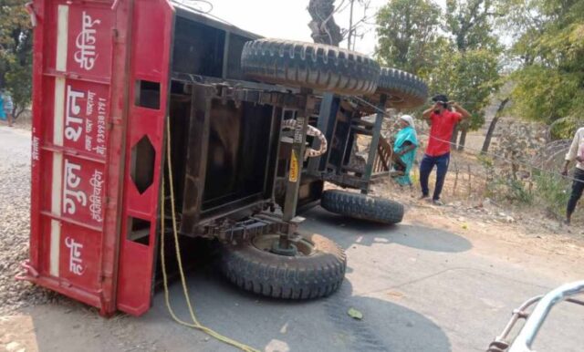 प्राप्त जानकारी के अनुसार जिलावाही गांव से काकड़कसा गांव ट्रैक्टर में गिट्टी भर के ले जा रहे थे. रोजगार गारंटी योजना के तहत तालाब निर्माण हो रहा है. चेक डेम के लिए गिट्टी मजदूरों द्वारा ले जाया जा रहा था, जो अनियंत्रित होकर रास्ते मे ही पलट गई है.