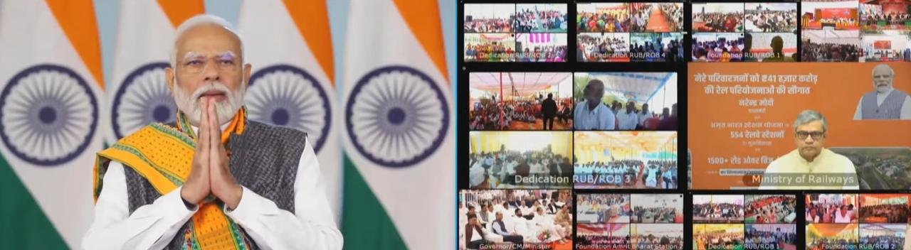 प्रधानमंत्री श्री नरेंद्र मोदी ने 26 फरवरी 2024 को साढ़े 12 बजे वीडियो कांफ्रेंसिंग के माध्यम से 41 हजार करोड़ रुपए से अधिक की लगभग दो हजार रेलवे बुनियादी ढांचा परियोजनाओं का शिलान्यास, उद्घाटन और राष्ट्र को समर्पित किया। उन्होंने इस मौके पर कहा कि भारत अब बड़े सपने देखता है और अपने सपनों को पूरा करने के लिए दिन-रात काम करता है।उन्होंने कहा कि ये कार्य लोगों के लिए श्ईज ऑफ लिविंगश् को आगे बढ़ाएंगे।