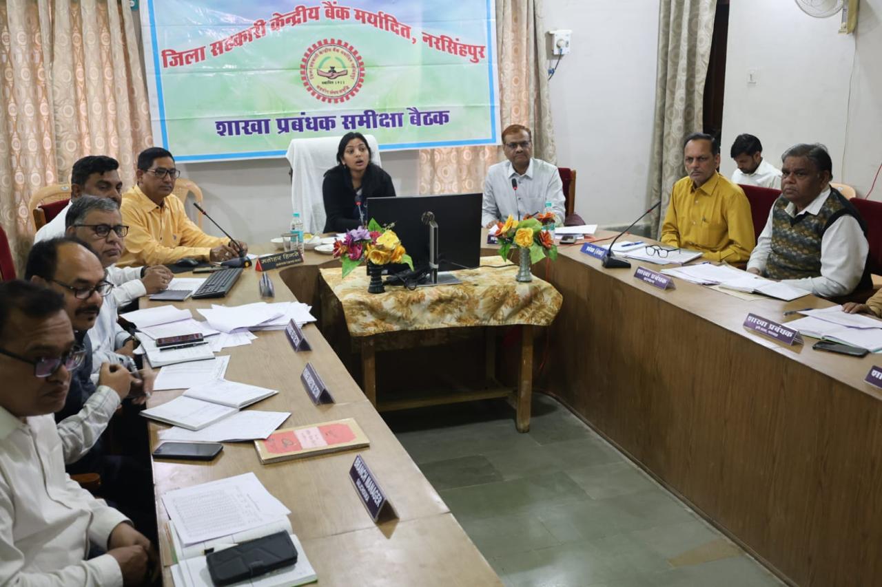 नरसिंहपुर, 06 मार्च 2024 को कलेक्टर एवं सहकारी बैंक प्रशासक श्रीमति शीतला पटले ने बुधवार को सहकारी बैंक में शाखा प्रबंधको की बैठक ली। बैठक में उन्होंने ऋण-वितरण, वसूली एवं अमानत संग्रहण की समीक्षा की।