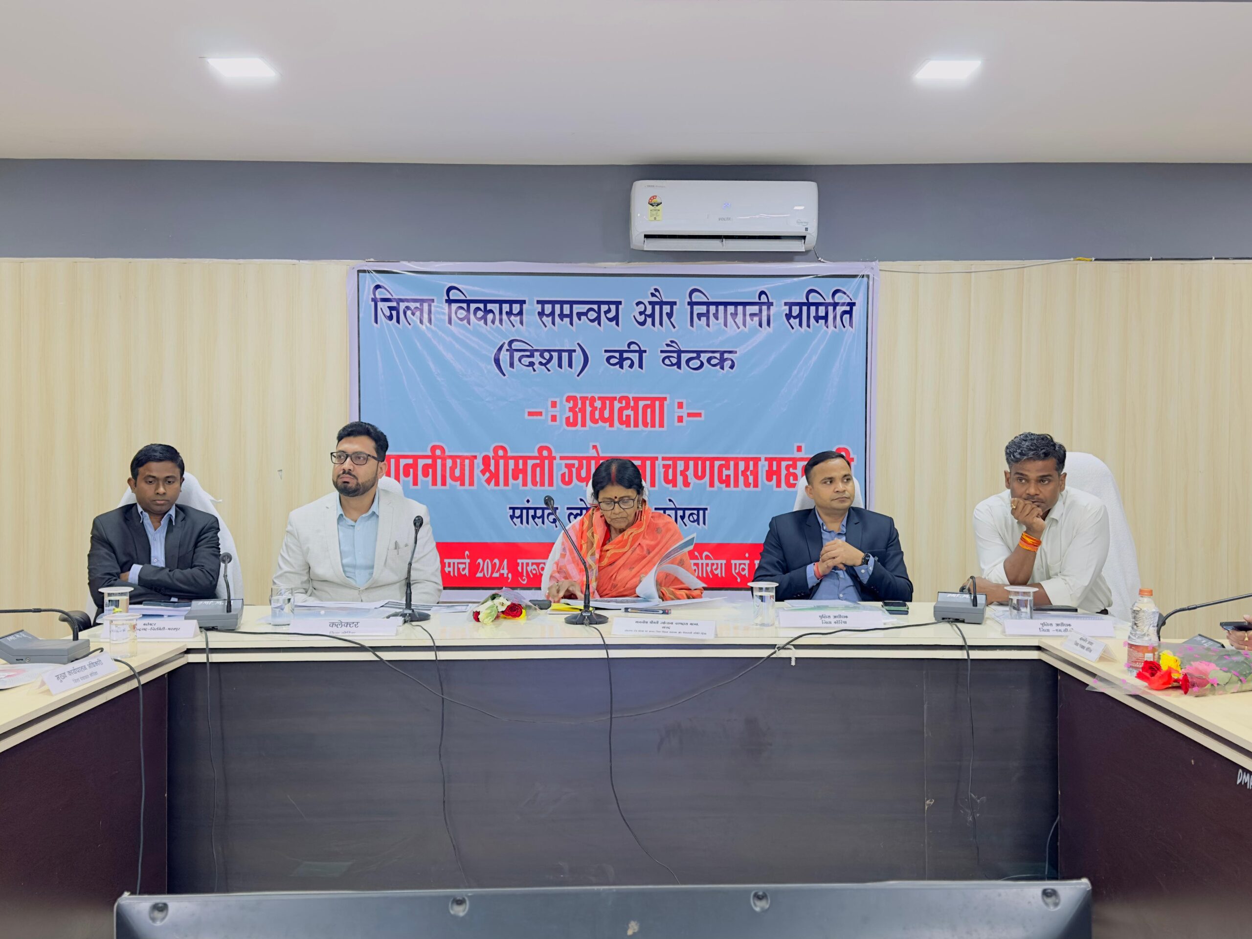 कोरिया : जिला कलेक्ट्रेट सभाकक्ष, बैकुंठपुर में कोरिया व एमसीबी जिले के अधिकारियों के साथ जिला विकास समन्वय और निगरानी समिति (दिशा) की बैठक कोरबा सांसद श्रीमती ज्योत्सना चरणदास महंत की अध्यक्षता में आयोजित की गई थी।