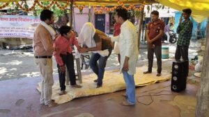 घर- घर जाकर मतदाताओं को पीले चावल देकर मतदान के लिए किया आमंत्रित