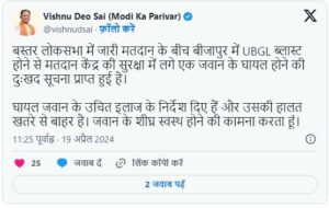 बस्तर सीट पर अब तक 17.05 प्रतिशत मतदान हो चुका है। वहीं, बीजापुर में 7.8 प्रतिशत वोटिंग हो चुकी है।