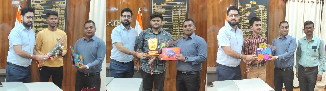 जिला कलेक्टर श्री विनय कुमार लंगेह से दसवीं एवं बारहवीं में प्रावीण्य अंक प्राप्त करने वाले आदर्श सरस्वती हायर सेकेंडरी स्कूल बैकुण्ठपुर के कक्षा दसवीं के छात्र सिद्धांत सिंह, शकुंतला सरस्वती हायर सेकेंडरी स्कूल, बैकुंठपुर के कक्षा बारहवीं के छात्र आशुतोष तथा शासकीय रामानुज आदर्ष हायर सेकेंडरी स्कूल, बैकुंठपुर के छात्र तेजप्रताप राजवाड़े ने उच्चतर अंक प्राप्त कर स्कूल व जिले को गौरवान्वित करने वाले इन मेधावी छात्रों ने मुलाकात किया।