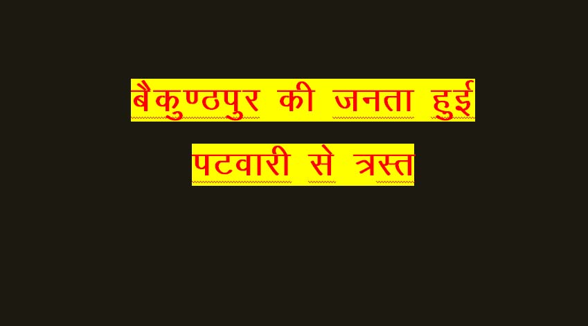 बैकुण्ठपुर जिला मुख्यालय की जनता की मांग है कि, कोरिया कलेक्टर ऐसे भ्रष्ट पटवारी की जांच करें। जिसके लड़के के द्वारा करोड़ो की जमीन खरीदी और बिक्री का अवैध कारोबार जारी है। यहां तक की अपने पिता का नाम बी.के. मिश्रा भी लिखना चालू कर दिया। जानकार सूत्र बताते है कि, इसके द्वारा एक बहुत बड़ा समूह बनाया गया है और इस समूह का सरदार बालमिक मिश्रा का सुपुत्र है। बाप के काली कमाई को लेकर भू-माफिया डोन बन चुका है।