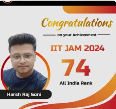 खास बात ये है कि उन्होंने बिना कोचिंग किए ही अच्छा रैंक हासिल किया है। इसके पहले 12 फरवरी 2023 में इसका एग्जाम दिलाया था। इसके लिए कोचिंग भी किया। लेकिन एग्जाम शुरु होने के 2 दिन पहले ही तबीयत खराब हो गई। घबराहट में पेपर बिगड़ गया। इससे कम रैंक 824 ही आया था। उसके बाद फिर से हार न मानकर फिर से तैयारी में जुट गया। जहां 11 फरवरी 2024 को एग्जाम दिलाया। इस तरह दूसरे प्रयास में उन्होंने कड़ी मेहनत कर बेहतर रैंक हासिल किया। उनकी बेहतर रैंक आने पर कॉलेज के प्राचार्य ने गुलदस्ता भेंट कर सम्मानित किया। हर्षराज सोनी के पिता श्री संतोष कुमार सोनी एवं माता श्रीमती सोभा देवी सोनी दरबारीटोली में निवास करते हैं। आईआईटी में आल इंडिया रैंक में 74 वां रैंक हासिल करने पर माता-पिता बहुत खुश है। उन्होंने बताया कि हर्षराज को बैंगलोर साइंटिस्ट एजुकेशन में प्रवेश के लिए चुना गया है।