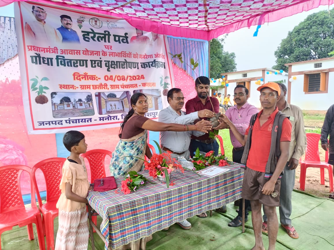 जशपुरनगर : छत्तीसगढ़ की पहली तिहार हरेली के दिन जिले के सभी ब्लाकों में एक पेड़ मां के नाम के सार्थक सन्देश के साथ कलेक्टर डॉ. रवि मित्तल एवं जिला पंचायत सीईओ श्री अभिषेक कुमार के मार्गदर्शन में वृहद स्तर पर प्रधान मंत्री आवास योजना के हितग्राहियों को स्थानियों जनप्रतिनिधियों के हाथों 5 हजार से अधिक पौधा वितरण किया गया। इसके साथ ही जिले के प्रत्येक ग्राम पंचायत में पीएम आवास योजना के हितग्राहियों के घरों में वृक्षारोपण का कार्यक्रम भी आयोजित किया गया।
