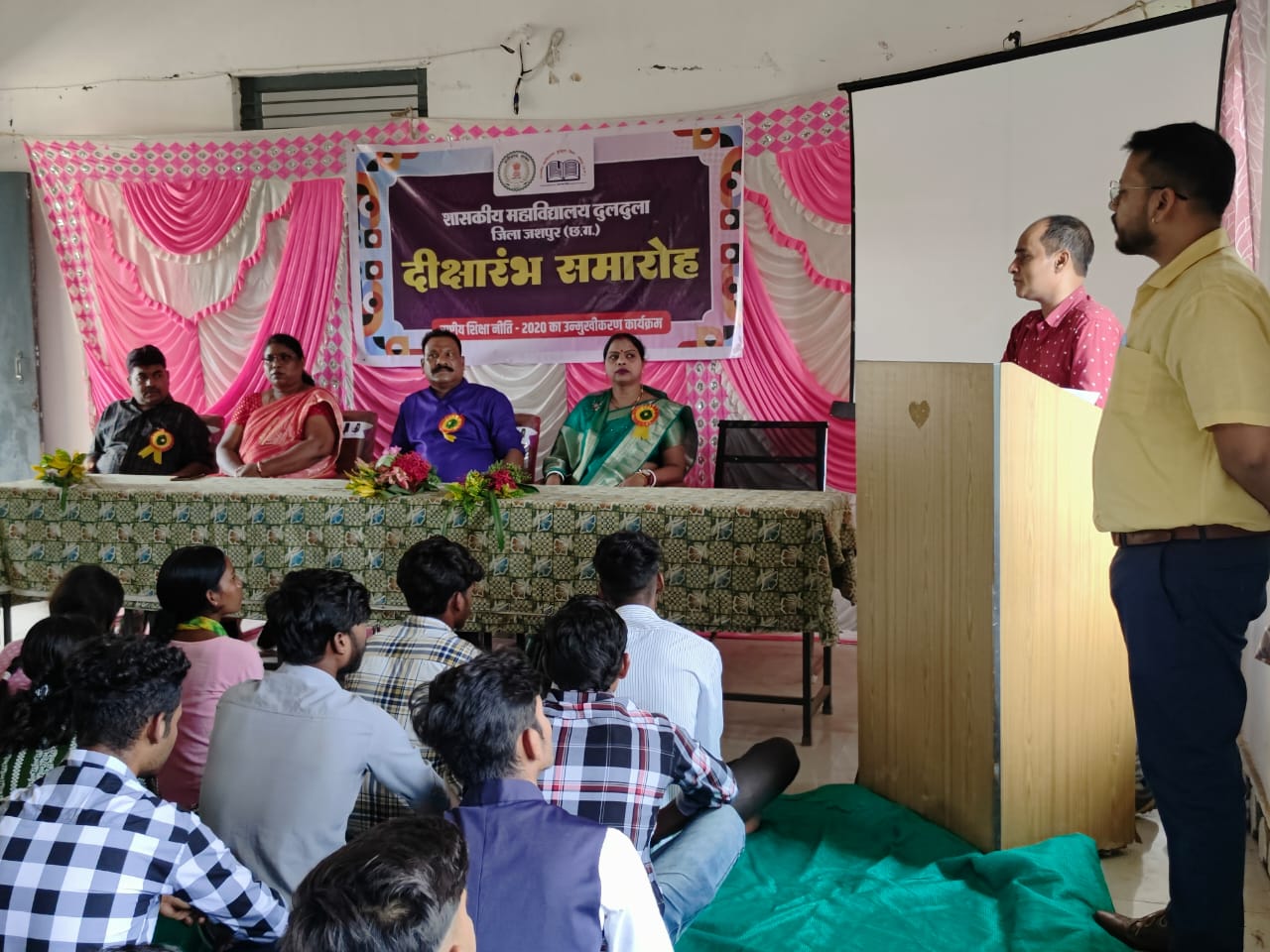 जशपुरनगर : छत्तीसगढ़ उच्च शिक्षा विभाग के निर्देशानुसार राष्ट्रीय शिक्षा नीति के प्रचार-प्रसार एवं छात्रों में इस नीति से संबंधित प्रश्नों का उत्तर देने के लिए शासकीय महाविद्यालय दुलदुला में आज को दीक्षा आरंभ समारोह का आयोजन किया गया। समारोह में नव प्रवेशित प्रथम वर्ष के छात्र-छात्राओं को तिलक लगाकर महाविद्यालय में औपचारिक शिक्षा ग्रहण करने हेतु महाविद्यालय परिवार से जोड़ा गया।