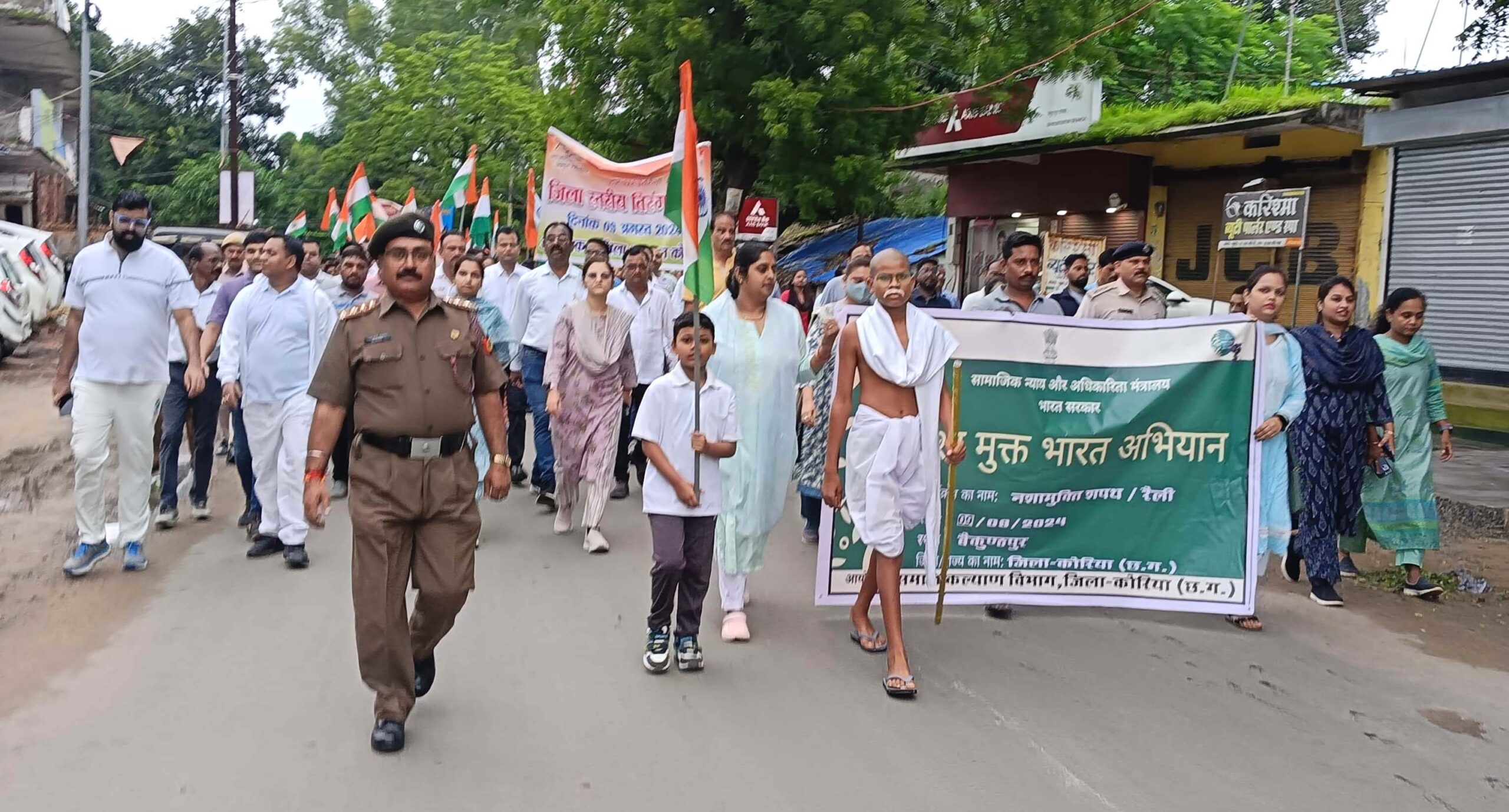 सुबह 7 बजे बैकुंठपुर के फव्वारा चौक से शासकीय आदर्श रामानुज उच्चत्तर माध्यमिक शाला, बैकुंठपुर तक कलेक्टर श्रीमती चन्दन त्रिपाठी के नेतृत्व में तिरंगा रैली में बड़ी संख्या में जनप्रतिनिधि, शहरवासी, अधिकारी, कर्मचारी, स्कूली छात्र-छात्राएं शामिल हुए।