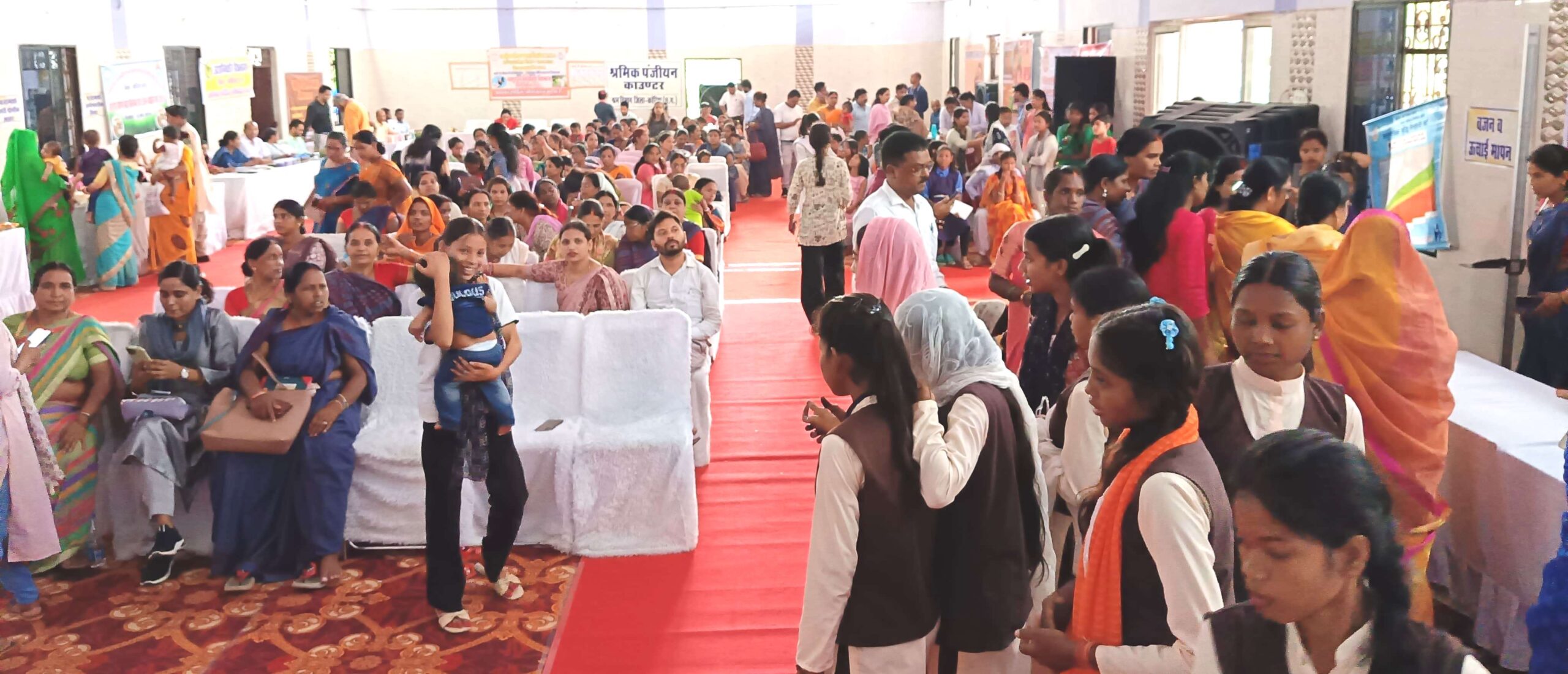 आयोजित कार्यक्रम में बच्चों एवं माताओं के स्वास्थ्य से संबंधित प्रश्नोत्तरी कार्यक्रम का आयोजन किया गया। स्तनपान व बच्चों को ऊपरी आहार से संबंधित जानकारी माताओं को दी गई। साथ ही बाजार की तली भुनी खाद्य सामग्री से बच्चों को दूर रखने की सलाह दी गई। कार्यक्रम में स्कूली व महाविद्यालय के छात्राओं द्वारा पोषण माह व वजन त्यौहार से संबंधित आकर्षक रंगोली व मेहंदी का प्रदर्शन किया गया। इसी प्रकार पोषण तथा स्वच्छता से संबंधित नुक्कड़ नाटक व सांस्कृतिक कार्यक्रम की प्रस्तुति दी गई। महिला एवं बाल विकास विभाग द्वारा पौष्टिक व्यंजनों, कृषि विभाग द्वारा मिलेट्स व दलहन, उद्यानिकी विभाग द्वारा पौष्टिक हरी सब्जियों, पशुधन विकास विभाग द्वारा अंडा व दुध से उत्पाद पौष्टिक सामग्रियों की प्रदर्शनी लगाई गई थी। इसी प्रकार स्वास्थ्य विभाग द्वारा 72 व आयुष विभाग द्वारा 15 लोगों स्वास्थ्य प्रशिक्षण कर दवाई का वितरण किया गया तथा श्रम विभाग द्वारा 17 श्रमिकों का पंजीयन किया गया।