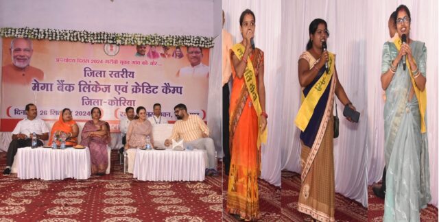 कोरिया, 27 सितंबर 2024/गरीबी और संघर्ष से जूझते हुए अपनी मेहनत और लगन से नई पहचान बनाने वाली 50 लखपति दीदियों का सम्मान समारोह, जिले में आयोजित मेगा बैंक लिंकेज एवं क्रेडिट कैंप में हुआ। ये महिलाएं, जो कभी रोजी-रोटी के लिए संघर्ष कर रही थीं, आज समाज के लिए प्रेरणा बन चुकी हैं।