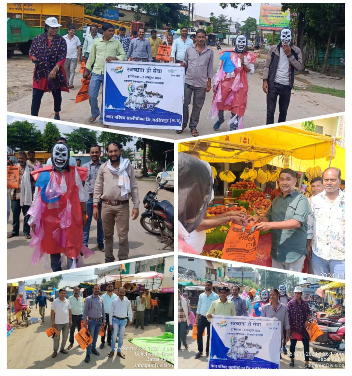 नरसिंहपुर : स्वच्छता ही सेवा अभियान के अंतर्गत कलेक्टर श्रीमती शीतला पटले एवं सीईओ जिला पंचायत श्री दलीप कुमार के मार्गदर्शन में जिले में स्वच्छता अभियान को लेकर विभिन्न गतिविधियों का आयोजन किया जा रहा है।