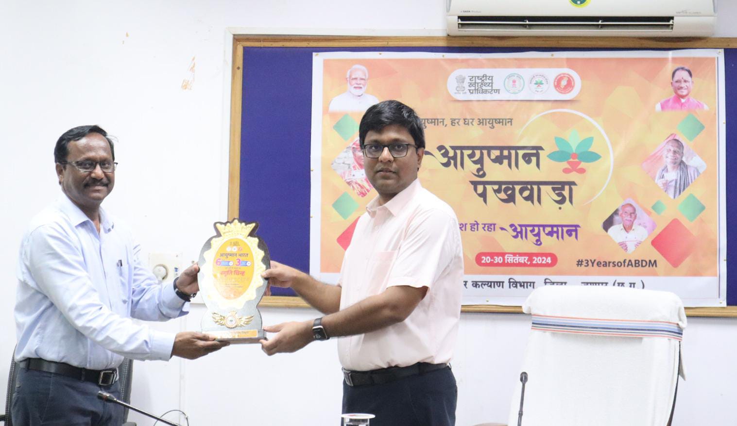 जशपुरनगर : मुख्यमंत्री श्री विष्णु देव साय प्रदेश के आम नागरिकों तक आयुष्मान कार्ड से बेहतर स्वास्थ्य सुविधाएं उपलब्ध कराने के निर्देश दिए हैं। कलेक्टर डॉ. रवि मित्तल ने आज आयुष्मान कार्ड में उत्कृष्ट कार्य करने वाले स्वास्थ्य विभाग के डॉक्टरों और कर्मचारियों प्रतीक चिन्ह और प्रशस्ति पत्र देकर सम्मानित किया। आयुष्मान भारत प्रधानमंत्री जन आरोग्य योजना शहीद वीर नारायण सिंह आयुष्मान स्वास्थ्य योजनांतर्गत शासन के निर्देशानुसार जिले के समस्त विकास खंड में दिनांक 20 सितंबर 2024 हो 30 सितंबर 2324 के दौरान आयुष्मान पखवाड़ा मनाया जाना है। पखवाड़े में विकासखण्ड स्तर पर छुटे हुए शेष हितग्राहियों का आयुष्मान कार्ड पंजीयन शिविर का अयोजना किया जा रहा है। जिसमें स्वास्थ्य विभाग के सी एच मो ,आर एच वो ए एन एम आयुष्मान मित्र एवं स्वास्थ्य मितानी के द्वारा पंजीयन किया जा रहा है. आयुष्मान स्वास्थ्य जाँच शिविर, आयुष्मान चौपाल सभा का आयोजन हितग्राहियो से अनुभव साझा करना जिससे संरपच मितानिनो, आगनबाड़ी कार्यकर्ता एवं हितग्राहियो को योजना से संबंधित लाभ के बारे में बताया जा रहा है। जिले के हायर सेकेण्डरी एवं हाईस्कूल स्तर पर आयुष्मान, घर-घर आयुष्मान, हर घर आयुष्मान आयुष्मान ने बदली ग्रामीण भारत की तस्वीर, आयुष्मान भारत विकसित भारत की आधारशिला, आयुष्मान भारत विजीटल मिशन एवं स्वास्थ्य सेवाओं की सुगम पहुंच में प्रौद्योगिकी का योगदान विषय पर निबंध प्रतियोगिता का आयोजन किया जा रहा है। बेहतर कार्य करने वाले डाक्टरों और कर्मचारियों के लिए जिला प्रशासन और स्वास्थ्य विभाग ने बधाई समारोह आयोजित किया जा रहा है।साथ साथ आयुष्मान सायकल रैली के माध्यम से लोगों तक योजनाओं का प्रचार प्रसार किया जा रहा है। आज कलेक्ट्रेट के सभाकक्ष में सम्मान समारोह का आयोजन किया गया जिसमें राज देवशरण जिला चिकित्सालय जशपुर को जिले में सर्वाधित हितग्राही 4772 को निःशुल्क लाभ प्रदाय करने पर प्रशस्ति पत्र एवं प्रतीक दिया गया जिसने प्रशस्ति पत्र प्राप्त करने के लिए डॉ० विपिन इन्द्रवार सिविल सर्जन सह मुख्य अस्पताल अधीक्षक, संदीप भगत नोडल अधिकारी आयुष्मान भारत जिला चिकित्सालय जशपुर श्रीमती हरावती सिंह मेडिको सुश्री रजनी सोनवानी आयुष्मान मित्र सामुदायिक स्वास्थ्य केन्द्र दुलदुला को 726 हितग्राहियों का लाभ प्रदाय करने हेतु प्रशस्ति पत्र प्रदाय दिया गया डॉ . शोभा मिंज (विकास खंड चिकित्सा अधिकारी दुलदुला उपस्थित थे, सामुदायिक स्वास्थ्य केन्द्र मनोरा को 704 हितग्राहियों को लाभ प्रदाय करने पर प्रशस्ति पत्रक प्रदाय किया गया श्री आंनद लकड़ा विकासखण्ड कार्यक्रम प्रबंधक मनोरा प्राथमिक स्वास्थ्य केन्द्र छिछली जो अत्