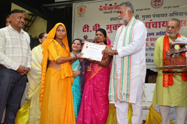 कार्यक्रम में अतिथियों ने जिले के 6 ब्लॉक के कुल 56 ग्राम पंचायतें टीबी मुक्त हो जाने पर इन ग्राम पंचायतों के सरपंच एवं पंच को गांधी जी की प्रतिमा एवं प्रमाण पत्र देकर सम्मानित किया गया। कार्यक्रम की शुरूआत में दौरान मंत्री श्री पटेल ने राष्ट्रपिता महात्मा गांधी जी की जयंती के अवसर पर उनकी प्रतिमा पर माल्यार्पण कर उन्हें सादर नमन किया।