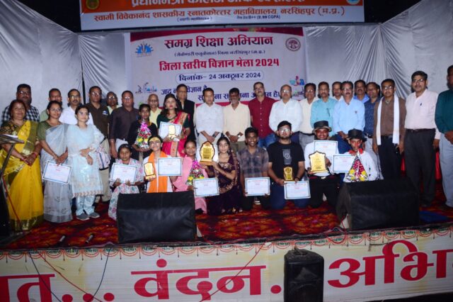 नरसिंहपुर : कलेक्टर श्रीमती शीतला पटले के मुख्य आतिथ्य में विज्ञान प्रदर्शनी और विज्ञान के प्रति जागरूकता अभियान के अंतर्गत “जादू नहीं विज्ञान है- समझना व समझाना आसान है” जिला स्तरीय प्रतियोगिता समापन कार्यक्रम पीजी कॉलेज नरसिंहपुर के ऑडिटोरियम में हुआ।