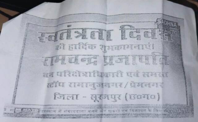 इसी प्रकार सूरजपुर जिले में और भी बहुत से चैंनलों के नाम पर फर्जी आईडी लटकाकर पैसा वसूल रहे है। जिसमें उदाहरण के तौर पर साधना न्यूज का प्रिंट आम जनता के समक्ष प्रस्तुत है। ऐसे भी पत्रकार जिले में है जो कि सूचना के अधिकार नियम का उपयोग करके पैसा निकाल रहे है। क्या इस पर जनसम्पर्क अधिकारी व पुलिस विभाग संज्ञान में लेगें ? या फिर फर्जी बिल के संबंध में राज्य स्तर पर कार्यवाही करने में बाध्य होना पड़ेगा।