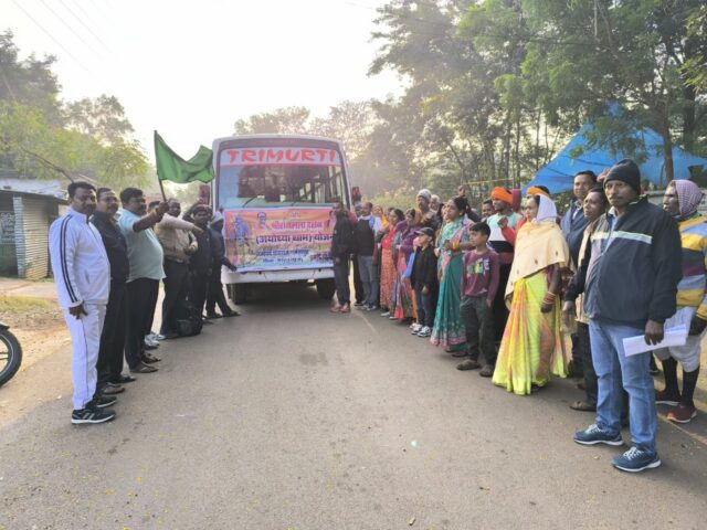कलेक्टर श्री रोहित व्यास के मार्गदर्शन में आज जशपुर जिले से सभी विकासखंड से श्रद्धालुओं का जत्था ‘‘श्री रामलला दर्शन’’ अयोध्या धाम यात्रा योजनान्तर्गत छठवां चरण 11 से 14 नवंबर तक अयोध्या दर्शन के लिए जिले के जनपद पंचायत, नगर पंचायत, नगर पालिका से कुल-204 यात्रियों को अंबिकापुर के लिए जनपद पंचायत के उपाध्यक्ष श्री राजकपूर भगत ने बस को हरि झंडी दिखाकर रवाना किया अंबिकापुर से ट्रेन में अयोध्या के लिए रवाना होंगे।