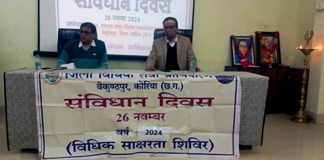 कोरिया, 26 नवम्बर 2024/देशभर में 26 नवंबर को संविधान दिवस मनाने के क्रम में जिला न्यायालय बैकुंठपुर, पीजी कॉलेज बैकुंठपुर और बिशनपुर शासकीय हाई स्कूल में संविधान के महत्व पर आधारित कार्यक्रम आयोजित हुए।
