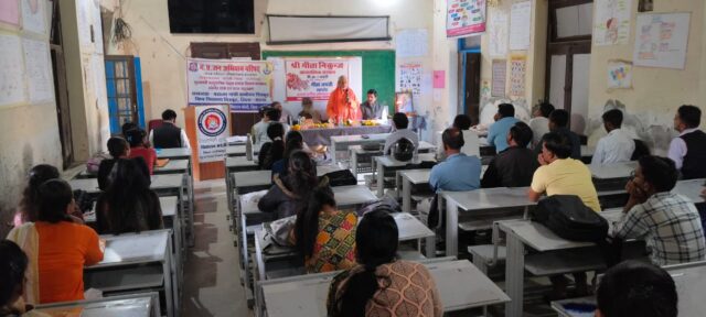 गीता जंयती पर रातीकरारखुर्द आश्रम नर्मदा तट के स्वामी आत्मदृष्टानंद के मुख्य आतिथ्य, मप्र जनअभियान परिषद श्री जयनारायण शर्मा की अध्यक्षता एवं शिक्षक श्री शशिकांत मिश्रा के मुख्यवक्ता तथा शारदा आश्रम के संत स्वामी निरंजन महाराज के विशिष्ट अतिथि में उत्कृष्ट विद्यालय करेली में कार्यक्रम आयोजित किया गया।