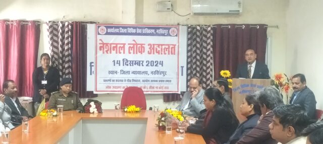 नरसिंहपुर : मुख्य न्यायाधिपति उच्च न्यायालय मप्र एवं कार्यपालक अध्यक्ष मप्र राज्य विधिक सेवा प्राधिकरण जबलपुर के निर्देशानुसार जिला विधिक सेवा प्राधिकरण नरसिंहपुर के तत्वावधान में प्रधान जिला एवं सत्र न्यायाधीश व अध्यक्ष जिला विधिक सेवा प्राधिकरण श्री कमल जोशी ने नेशनल लोक अदालत का शुभारंभ दीप प्रज्जवलन कर जिला प्राधिकरण नरसिंहपुर के एडीआर भवन में शनिवार को किया।