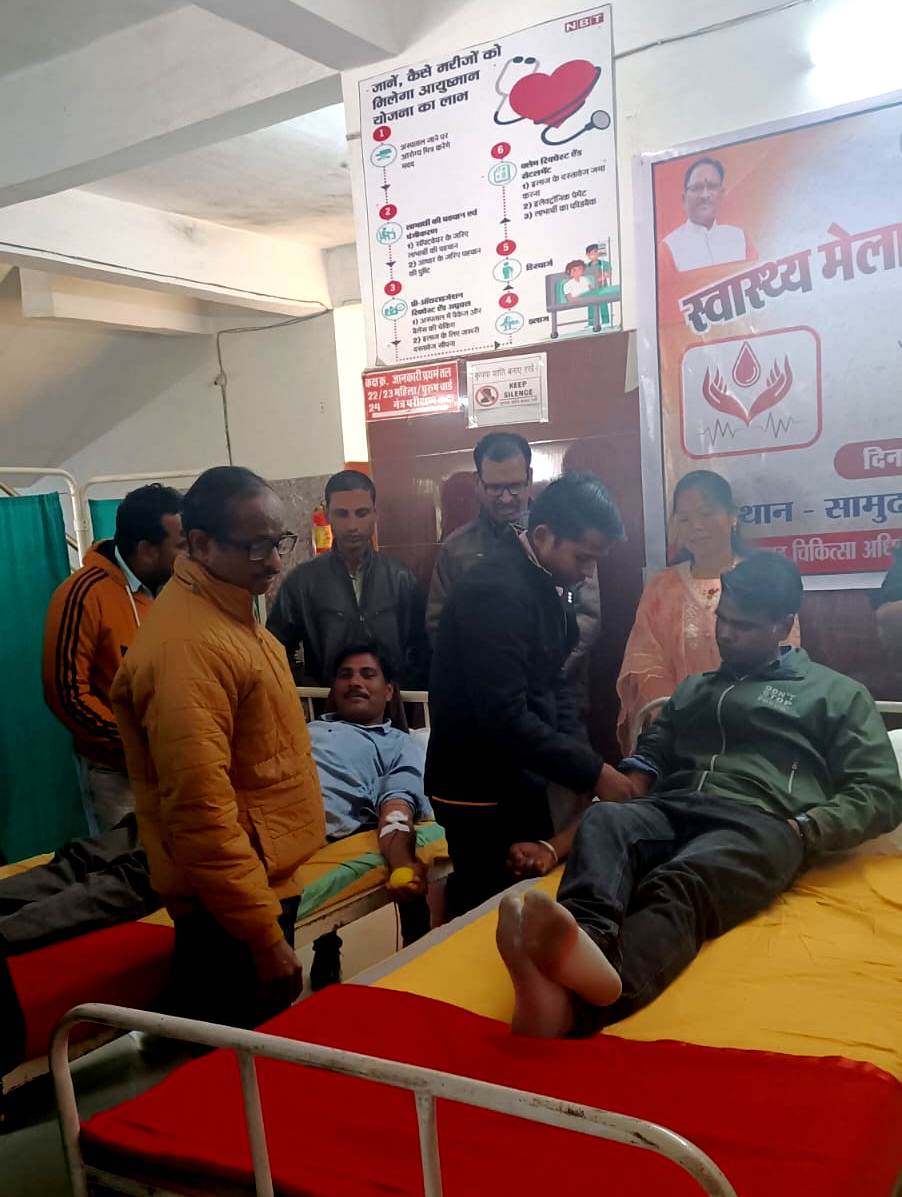 कोरिया 17 दिसंबर 2024/ सरकार गठन के एक वर्ष पूर्ण होने के उपलक्ष्य में सामुदायिक स्वास्थ्य केंद्र, पटना में रक्तदान एवं स्वास्थ्य शिविर का आयोजन किया गया। कार्यक्रम का शुभारंभ नगर पंचायत पटना अध्यक्ष श्रीमती गायत्री सिंह और पार्षद श्री सुनील सिंह एवं श्रीमती नाजमा बेगम के द्वारा किया गया।