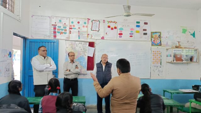 जिला शिक्षा अधिकारी श्री व्यौहार ने विभिन्न कक्षाओं में जाकर विद्यार्थियों को निरंतर उपस्थिति देने के लिए प्रेरित किया। परीक्षा में अच्छे अंक लाने के लिए विद्यार्थियों को मार्गदर्शन दिया। उन्होंने प्रत्येक शनिवार होने वाले जनशिक्षा केंद्र स्तरीय शैक्षिक संवाद में प्राथमिक एवं माध्यमिक विभाग के शिक्षकों को कक्षानुरूप बच्चों का अधिगम स्तर बनाए रखने के निर्देश दिए। उन्होंने पुस्तकालय के रखरखाव पर प्रसन्नता व्यक्त की। इसके उपरांत स्मार्ट क्लास में जाकर विद्यालय की शिक्षक द्वारा तैयार हिंदी विषय के आधारभूत अधिगम मॉड्यूल से शिक्षण के तरीके को देखा। उन्होंने प्रयोगशाला में संचालित गतिविधियों एवं उसके दस्तावेजीकरण का अवलोकन किया।