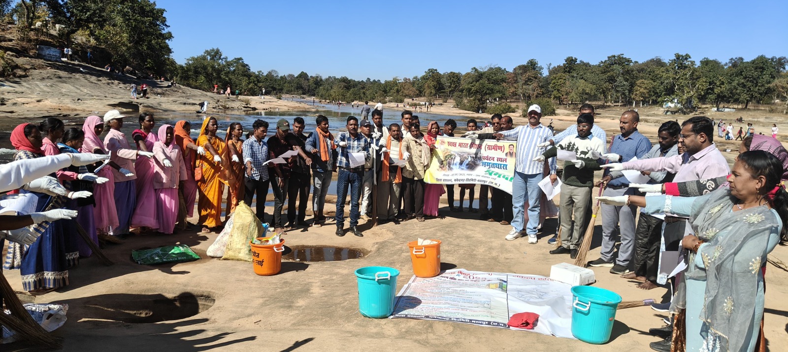 एमसीबी : जिले के बहुचर्चित और रमणीय स्थल अमृतधारा में जिले के अधिकारियों सहित ग्रामीणों आगंतुकों ने स्वच्छता श्रमदान कर स्वच्छता का संदेश दिया। नये वर्ष के आगमन से अमृतधारा का लुफ्त उठाने हेतु हजारों की संख्या में पर्यटक अमृतधारा पहुंचते है। पिकनिक मनाते हुए जागरूकता के अभाव में जगह-जगह प्लास्टिक की थैलियों एवं बचे हुए अपशिष्ट को स्थल पर ही छोड़ देते है। स्थल पर सामुदायिक स्वच्छता हेतु जहां श्रमदान स्वच्छता की पहल की वही दूसरी और अपना कचरा अपनी जिम्मेदारी हेतु समझाइए भी दी गई। मंदिर समिति के पुजारी के द्वारा अमृतधारा स्थल पर स्वच्छता हेतु माइक के माध्यम से आगंतुकों से गंदगी न करने हेतु भी अनुरोध किया जाता है। श्रमदान कर परियोजना निदेशक नितेश उपाध्याय ने 2025 में सामुदायिक स्वच्छता हेतु घरेलू गंदे पानी, जल संवर्धन जल संरक्षण हेतु, सिंगल यूज प्लास्टिक प्रतिबंध, सोर्स सेग्रीगेशन, हेतु स्वच्छता शपथ दिलाई एवं संकल्प पर हस्ताक्षर किए गए। जिसमें जिला खनिज अधिकारी दयानंद तिग्गा, खनिज इंस्पेक्टर आदित्य मानकर, जनपद सीईओ वैशाली सिंह, रतन दास मानिकपुरी, रितेश पाटीदार, सिमेंद्र सिंह के साथ जिला समन्वयक राजेश जैन प्रभा प्यासी सरपंच सोनसाय, सचिव संतलाल साहू एवं स्वच्छग्राही समूह की महिलाएं उपस्थित रही।