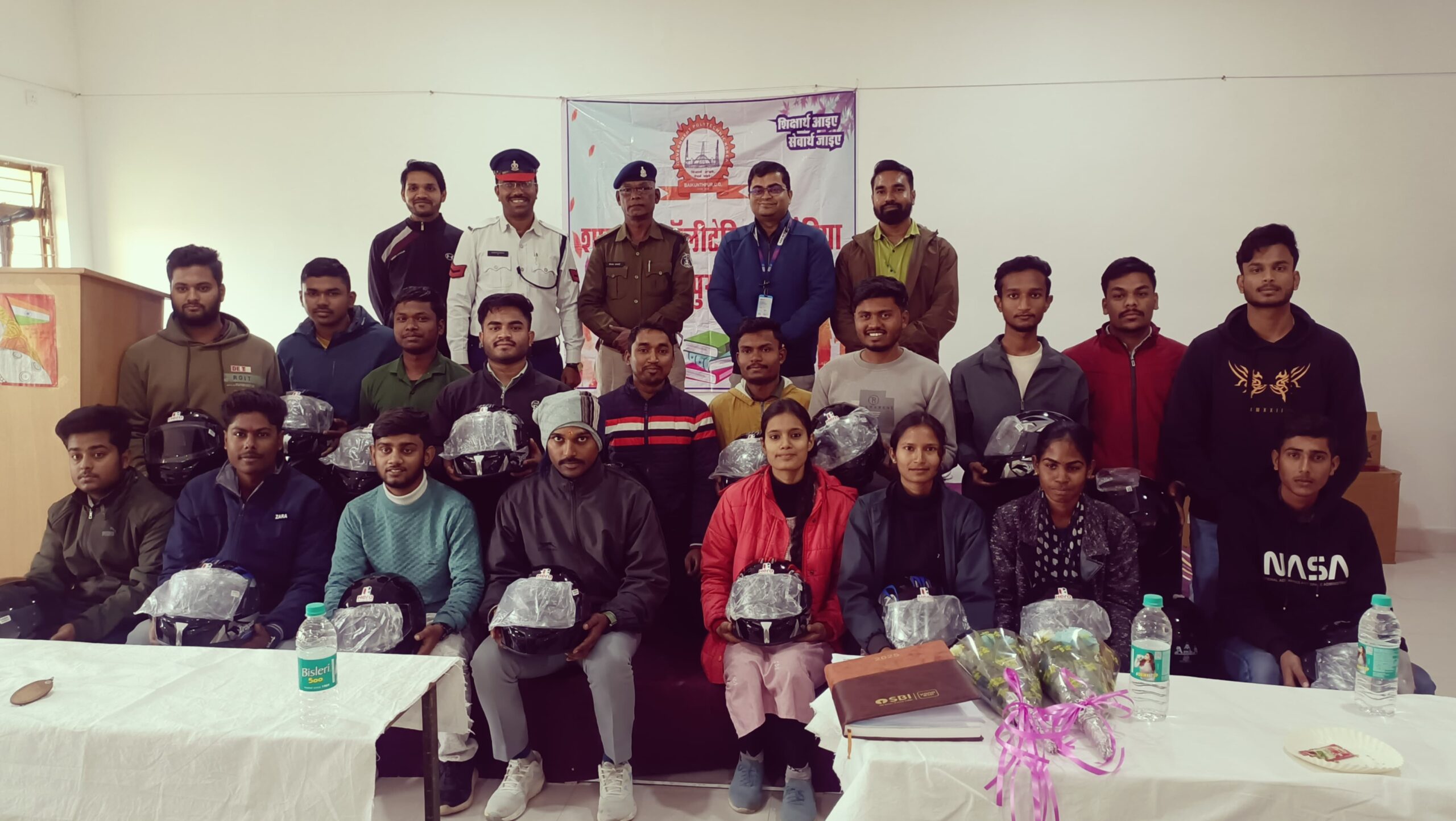 कोरिया : शासकीय पॉलिटेक्निक कॉलेज में जिला यातायात पुलिस विभाग के द्वारा संस्था के अधिकारी/कर्मचारी एवं अध्ययनरत् छात्र/छात्राओं को यातायात से संबंधित नियमों के बारे में जागरूक करने के लिए यातायात जागरूकता कार्यक्रम का आयोजन किया गया। कार्यक्रम के मुख्य अतिथि भारतीय स्टेट बैंक शाखा बैकुण्ठपुर के शाखा प्रबंधक श्री राम सोनी, यातायात प्रभारी श्री बीरबल राजवाडे, यातायात जागरूकता प्रशिक्षण श्री महेश मिश्रा एवं संस्था के अधिकारी/कर्मचारी तथा छात्र/छात्राओं की उपस्थिति में कार्यक्रम सम्पन्न किया गया। मुख्य अतिथियों के द्वारा 18 वर्ष की आयु पूर्ण कर चुके छात्र/छात्राओं को हेलमेट वितरण किया गया। इस कार्यक्रम की सफलता में संस्था के प्राचार्य श्री भूषण कुमार नायक एवं प्रभारी श्री दीपक कुमार साहू का विशेष योगदान रहा। उक्त प्रशिक्षण कार्यक्रम में सभी विद्यार्थियों ने उत्साहित होकर यातायात नियमों की जानकारी प्राप्त की तथा अतिथियों ने अपने उद्बोधन में सभी से यातायात नियमों का पालन कर यात्रा करने की अपील की। प्राचार्य के द्वारा संस्था में आगे भी अन्य सामाजिक एवं जागरूकता कार्यक्रम का आयोजन पर जोर दिये जाने हेतु सभी को संबोधित किया गया