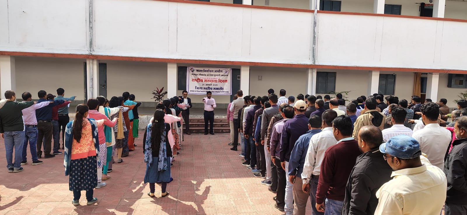 एमसीबी/24 जनवरी 2025/ मनेन्द्रगढ़-चिरमिरी-भरतपुर जिले के कलेक्ट्रेट कार्यालय के प्रांगण में “राष्ट्रीय मतदाता दिवस” के अवसर पर कलेक्टर एवं जिला निर्वाचन अधिकारी डी. राहुल वेंकट ने सभी अधिकारियों और कर्मचारियों को मतदान के प्रति अपनी जिम्मेदारी और लोकतंत्र के प्रति अपनी आस्था व्यक्त करते हुए शपथ दिलाई। उन्होंने सभी से निर्वाचन प्रक्रिया में निष्पक्ष और शांतिपूर्ण तरीके से मताधिकार का प्रयोग करने का संकल्प दिलाया। राष्ट्रीय मतदाता दिवस 25 जनवरी को मनाया जाता है, पर 25 जनवरी 2025 को शासकीय अवकाश पढ़ जाने के कारण इस वर्ष 24 जनवरी को ही राष्ट्रीय मतदाता दिवस मनाया गया। जिसका उद्देश्य नागरिकों को मतदान के महत्व के बारे में जागरूक करना था । जिला निर्वाचन अधिकारी ने कहा कि मतदान केवल अधिकार नहीं, बल्कि एक जिम्मेदारी है, जिसे हमें पूरी निष्पक्षता से निभाना चाहिए। यह दिन हमें यह याद दिलाता है कि लोकतंत्र को मजबूत बनाने के लिए प्रत्येक नागरिक का योगदान आवश्यक है। उन्होंने सभी अधिकारियों और कर्मचारियों को यह शपथ दिलाई कि चुनाव प्रक्रिया में निष्पक्षता और स्वच्छता बनाए रखेंगे। शपथ के दौरान सभी ने यह संकल्प लिया कि वे चुनावों में किसी भी प्रकार की अनियमितता से दूर रहेंगे और लोकतंत्र की ताकत को समझते हुए अपने मत का उपयोग करेंगे। इस शपथ समारोह में विभिन्न विभागों के अधिकारी और कर्मचारी उपस्थित थे।
