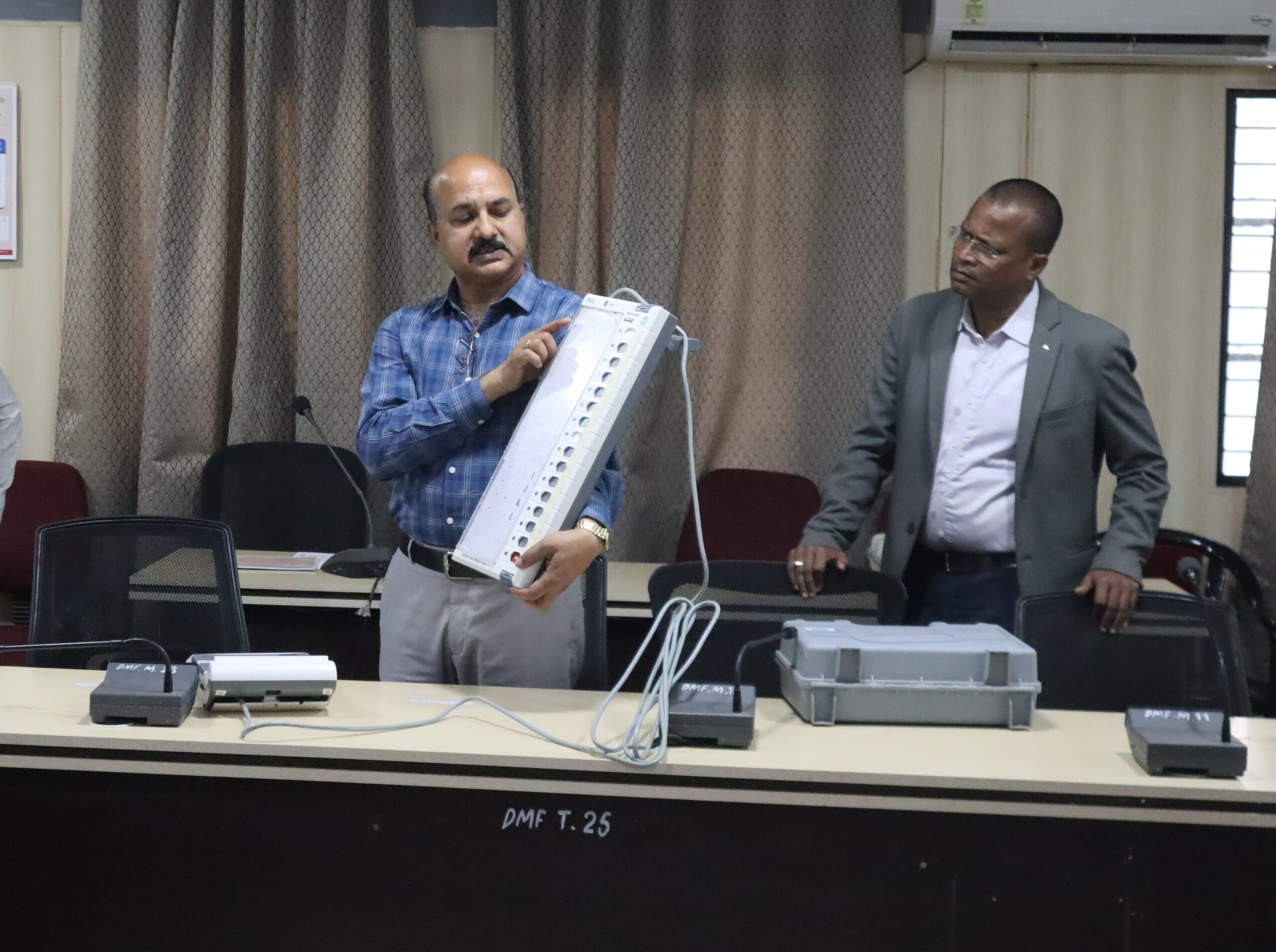 कलेक्टर एवं जिला निर्वाचन अधिकारी श्रीमती चन्दन त्रिपाठी के निर्देशन में उप जिला निर्वाचन अधिकारी श्री डी.डी. मंडावी एवं रिटर्निंग अधिकारी श्री उमेश पटेल की उपस्थिति में मास्टर्स ट्रेनर्स ने मीडिया प्रतिनिधियों को चुनाव में प्रयुक्त हो रहे एम-2 मशीन के सम्बंध में विस्तार से जानकारी देते हुए मतदान के दौरान अपने पसंद के उम्मीदवार को बैलेट यूनिट में मतदान करने के तरीकों को बताया। उन्होंने जानकारी दी गई कि मतदाता को एक ही बैलेट बटन में एक अध्यक्ष पद के लिए और एक पार्षद के लिए दबाना होगा, इस दौरान बीप की आवाजें भी सुनाई देंगी। बैलेट यूनिट में नोटा और इंड का विकल्प भी होगा।