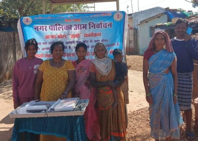 जशपुरनगर : कलेक्टर श्री रोहित व्यास के मार्गदर्शन में और जिला पंचायत सीईओ श्री अभिषेक कुमार के दिशा निर्देश में जशपुर विकासखंड के शहरी क्षेत्र आरा मिल के पास और राजा पारा में मतदान जागरूक अभियान के तहत ई .व्ही .एम. के माध्यम से अपने मताधिकार का उपयोग करने के लिए प्रोत्साहित किया जा रहा है। इसके साथ ही जागरूकता रैली और रंगोली के माध्यम से लोगों को अपने मताधिकार का उपयोग करने के लिए कहा जा रहा है।