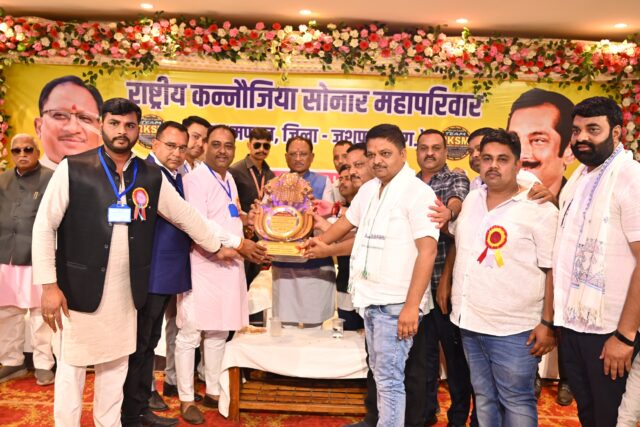 जशपुरनगर : मुख्यमंत्री श्री विष्णु देव साय आज जशपुर विकासखंड के श्याम पैलेस में राष्ट्रीय कनौजिया सोनार महापरिवार जशपुर मंडल के प्रतिभा सम्मान समारोह कार्यक्रम में शामिल हुए। और समाज को सामाजिक भवन बनाने के लिए 25 लाख की घोषणा की मुख्यमंत्री ने सोनार समाज के 10 वीं और 12 बोर्ड वीं में अच्छे अंक लाने वाले और आई आई टी में प्रवेश पाने वाले मेडिकल में प्रवेश लेने वाले प्रतिभाशाली बच्चों का प्रतीक चिन्ह और प्रशस्ति पत्र देकर सम्मानित किया।