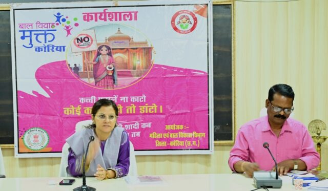 कोरिया : जिले को बाल विवाह मुक्त बनाने के उद्देश्य से कलेक्ट्रेट सभाकक्ष, बैकुंठपुर में कलेक्टर श्रीमती चंदन त्रिपाठी की अध्यक्षता में एक महत्वपूर्ण बैठक आयोजित की गई। बैठक में विभिन्न विभागों के अधिकारियों, पंचायत प्रतिनिधियों, समाजसेवियों, व्यापारियों और अन्य प्रमुख लोगों ने भाग लिया। महिला एवं बाल विकास विभाग द्वारा आयोजित इस एक दिवसीय कार्यशाला में बाल विवाह रोकने के प्रभावी उपायों पर चर्चा की गई।