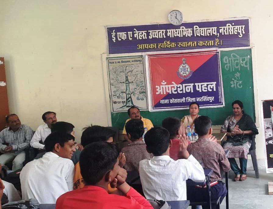 शासकीय नेहरू उमावि नरसिंहपुर में भविष्य से भेंट कार्यक्रम में शामिल हुई पुलिस अधीक्षक