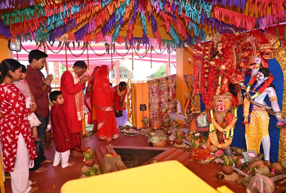 जशपुरनगर : मुख्यमंत्री श्री विष्णु देव साय ने आज मुख्यमंत्री कैम्प कार्यालय बगिया में अपनी धर्म पत्नी श्रीमती कौशल्या साय और अपने पूरे परिवार के साथ मां दुर्गा माता की पूजा अर्चना कर प्रदेश के सुख समृद्धि और खुशहाली की कामना की मुख्यमंत्री ने नन्हीं नव कन्याओं को भोजन कराकर उनका आशीर्वाद भी लिया।